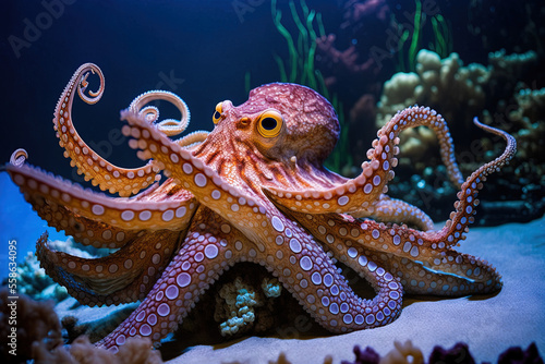 Octopus vulgaris, a common octopus, in the Mediterranean Sea. Generative AI