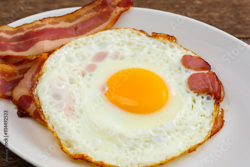 Of eggs and bacon on a. Dish egg bacon plate breakfast fried white. A plate of fried eggs and bacon on a white plate. A plate with eggs and lifestyle bacon on it.