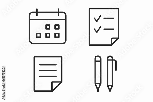 Office and Planning Line Icons – Calendar, Checklist, Document, Pen