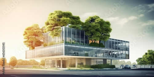 office building with tree for reducing carbon dioxide, Eco green environment.generative ai