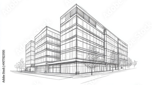 Office buildings hand drawn outline doodle icon. City downtown, business center, real estate and rent concept. Vector sketch illustration for print, web, mobile and infographics on white background.