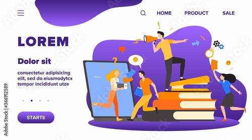 Office chaos vector illustration. Angry boss shouting at megaphone, busy employees running in hurry and panic. Can be used for lack of time, deadline, stress at work concepts