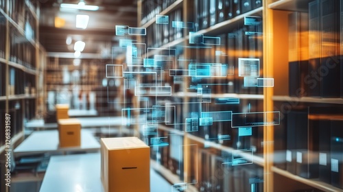 office environment showing a document management system with digital files being categorized and accessed with just a click.
