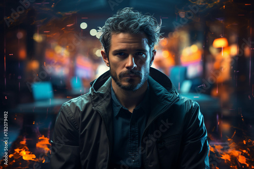 Office IT specialist worker system administrator hacker engineer picture portrait made with Generation AI technology