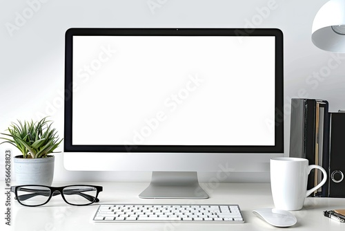 Office Supplies Over Desk with Keyboard and Glasses and Coffee Cup for Working Remotely Assorted