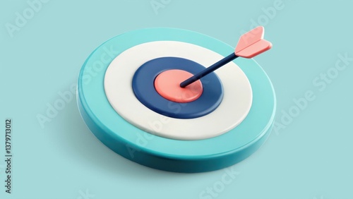 Office workspace 3D illustration concept. Target with arrow on a colored background.