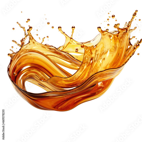 Oil dynamic splash isolated on a transparent background , whiskey splash, tea , fruit juice