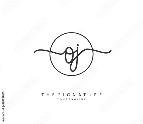 OJ Initial letter handwriting and signature logo. A concept handwriting initial logo with template element.