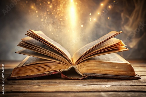 Old Book on White Background: Vintage Texture and Open Pages Symbolizing Education and Knowledge in a Long Exposure Style for a Timeless Aesthetic