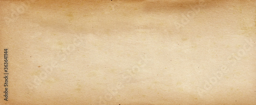 Old brown paper parchment background design with distressed vintage stains and ink spatter and white faded shabby center, elegant antique beige color