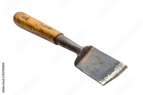 Old Chisel Tool with Wooden Handle Carpentry Hand Tool Woodworking Equipment Craftsman Steel