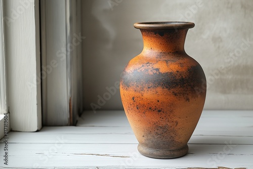 Old Clay Vase On a White Background in Natural Light