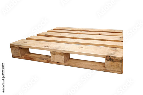 Old empty wooden transportation pallet isolated on a transparent background in close-up