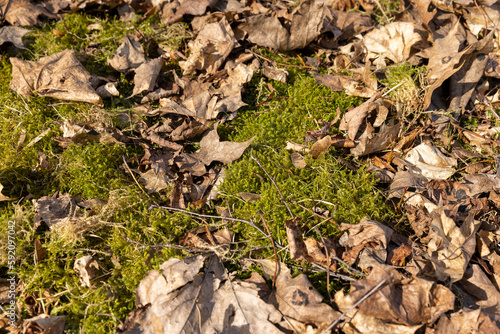 old leaves fallen in autumn on the ground in the spring season