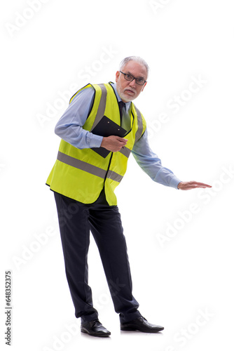 Old male architect isolated on white