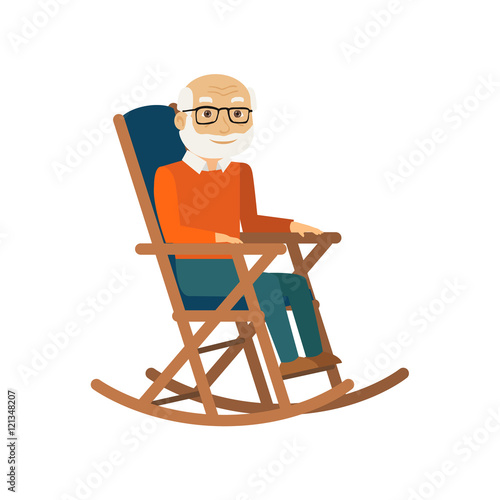 Old man sitting in rocking chair. Vector.