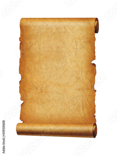 Old mediaeval paper sheet. Parchment scroll isolated on white