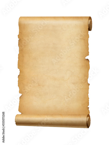 Old mediaeval paper sheet. Parchment scroll isolated on white