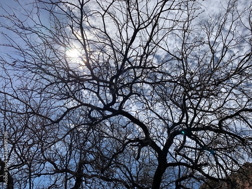 old mesquite tree branches against a cloudy sky