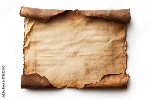 old paper manuscript isolated on white background. ancient page with space for writing , ai