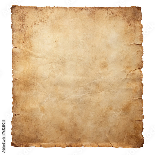 Old paper sheet isolated on transparent background. Crumpled paper texture.