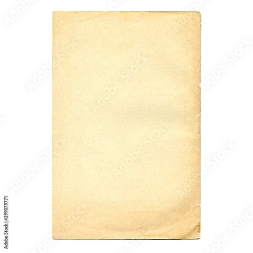 Old paper texture. Blank vintage page. Rough faded sheet surface. Empty place for text. Isolated on white background. Perfect for retro and grunge style design.