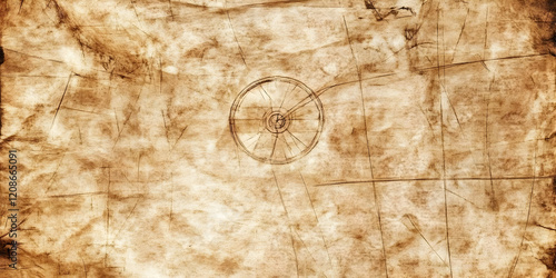 Old Parchment Paper Shows Circular Design with Cracks and Creases Beautifully Abstractly.