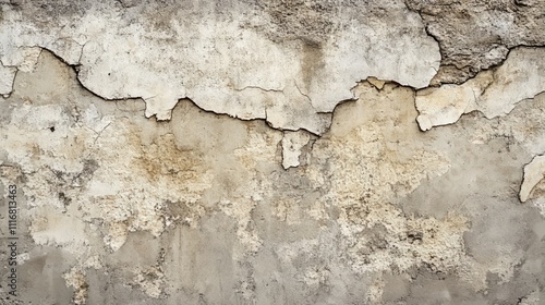 Old plaster wall with deep cracks and patches of paint peeling off, realistic texture