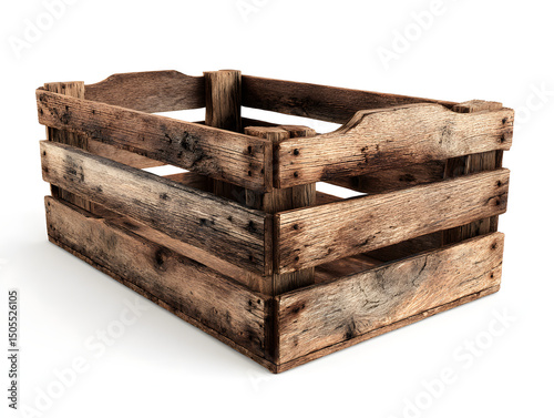 Old rustic empty wooden crate for storage and transport isolated on white background with copy space
