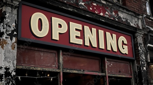 Old Storefront with 'Opening' Sign, Symbolizing Business Liquidation and Closure