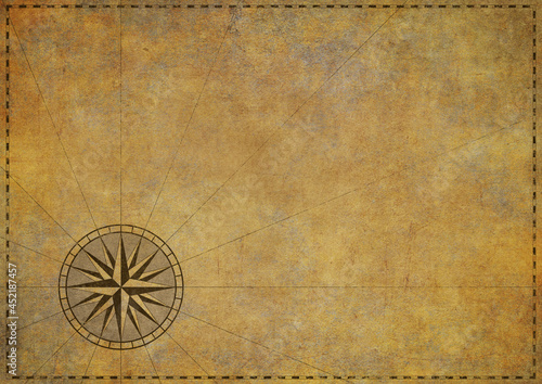 Old textured paper with wind rose compass sign. Vintage template. Background for design. Aged empty blank. Frame.