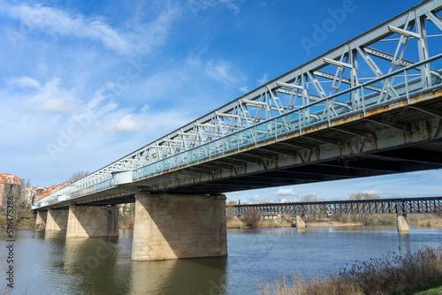 Old train Iron bridge over Duero river in Zamora. Spain.