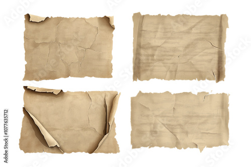Old vintage paper sheets set with torn edges. Different texture of antique paper or parchment isolated on transparent background, for text , ai