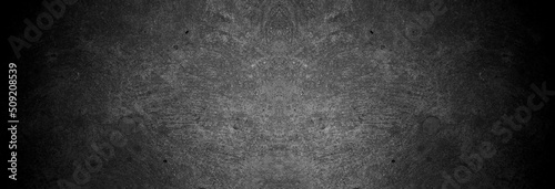 Old wall texture cement dark black gray panorama background abstract grey color design are light with white gradient background.