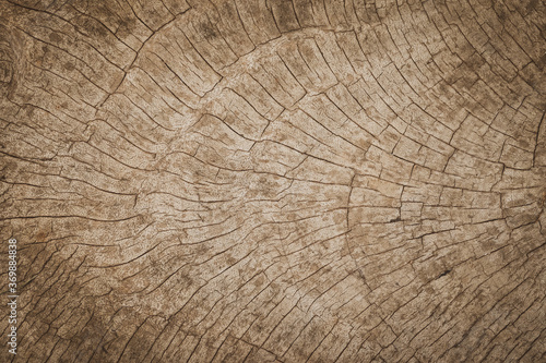 Old weathered wood texture background dark brown with tree rings natural grunge pattern.