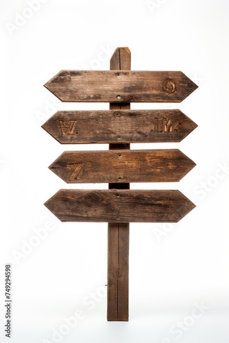 old wood directional sign against white background, in the style of clever wit сreated with Generative Ai
