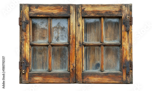 Old wooden window with double-glazed panes