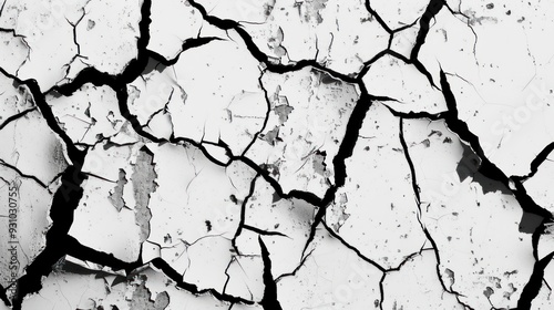 Old worn surface with a dirty, grunge pattern. Abstract black and white illustration of cracks and dots.