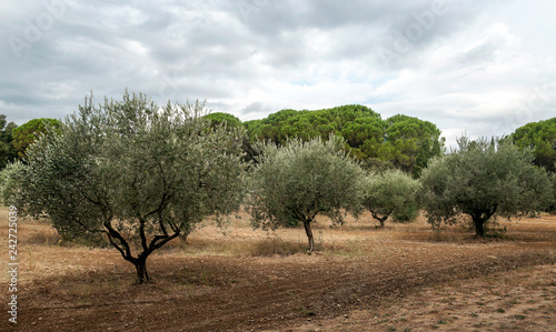 Olive trees in France on a cloudy day
