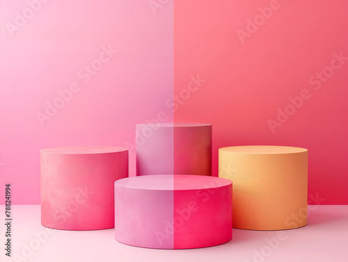 Ombre style podium concept ,Composition of bright colorful , Summer Podium Display, Step Geometry Shape, For Presentation Products, Abstract Background 3d Rendering