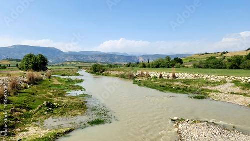 On a spring day, the Cakit River flows gently through Altinoluk Mahallesi in Karaisali, Adana, surrounded by vibrant greenery and basking in the warmth of the season’s renewal.