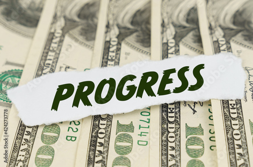On the background of dollars lies a piece of paper with the text - PROGRESS