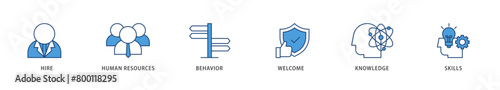 Onboarding icons set collection illustration of behavior, welcome, knowledge, and skills icon live stroke and easy to edit