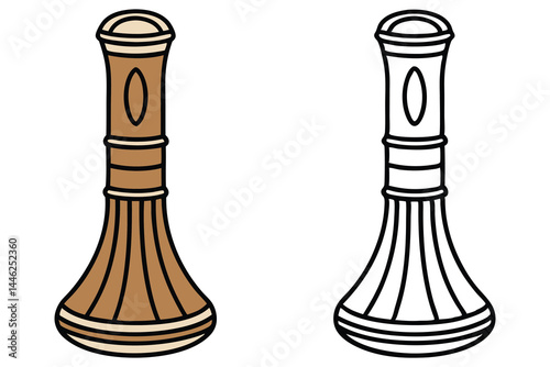 One brown chasen matcha whisk stands with an uncolored version, all on transparent background