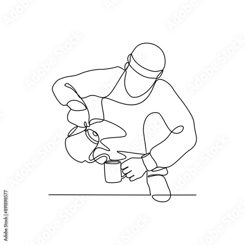 One continuous line drawing of People camping vector illustration. Camping and hiking activity design illustration simple linear style vector concept. Outdoor activity in the mountain with family