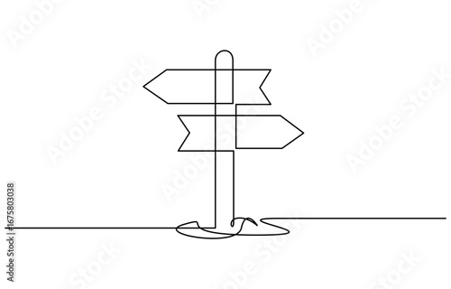 One Continuous line drawing of Road direction signpost arrows vector illustration. Editable outline