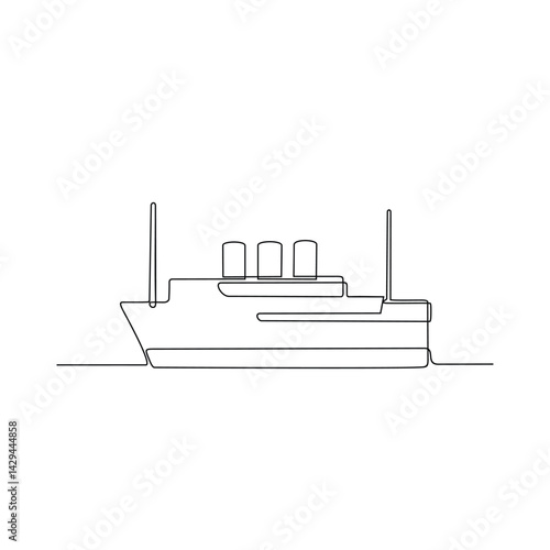 One continuous line drawing of Ship vehicle vector design illustration. Modern and traditional sea vehicle design in simple linear style concept. Ship design for your asset and educational purpose.