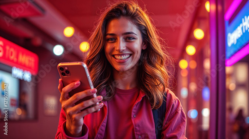 One happy young girl using her smartphone to browse the internet, Female watching the social media with her cellphone. Girl typing on a mobile phone.