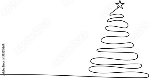 One line drawing of a Christmas tree with a star, minimalist abstract style on white background