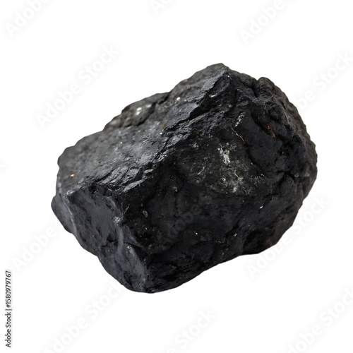 One piece of black charcoal or coal, a source of carbon-based fossil fuel, isolated on a transparent background png